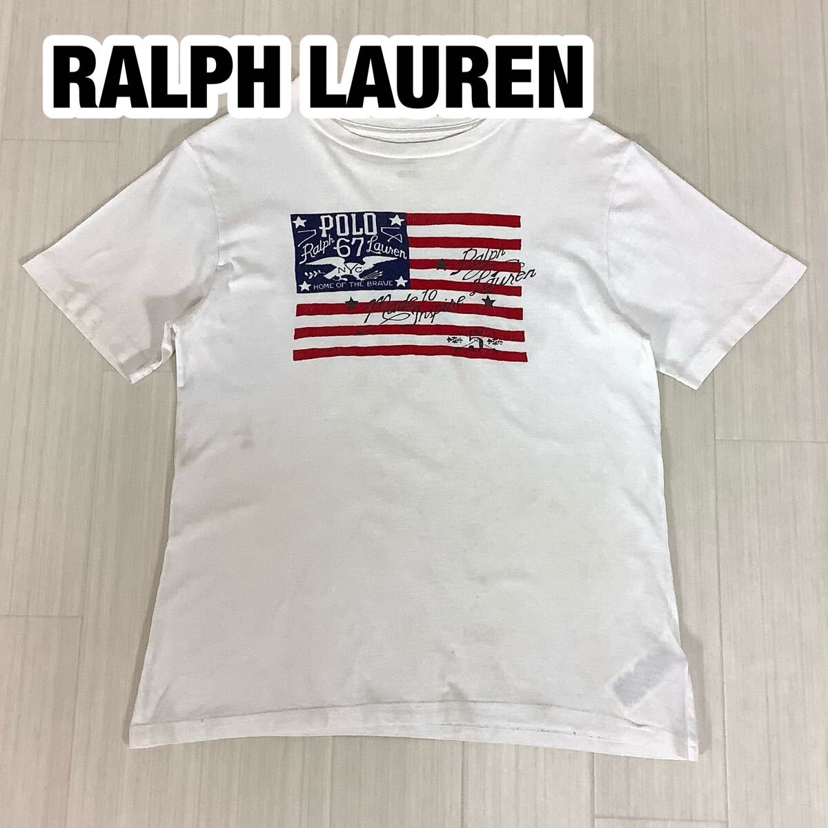 > POLO RALPH LAUREN ポロラルフローレン 半袖Tシャツ M ホワイト 星条旗 ビッグプリント
