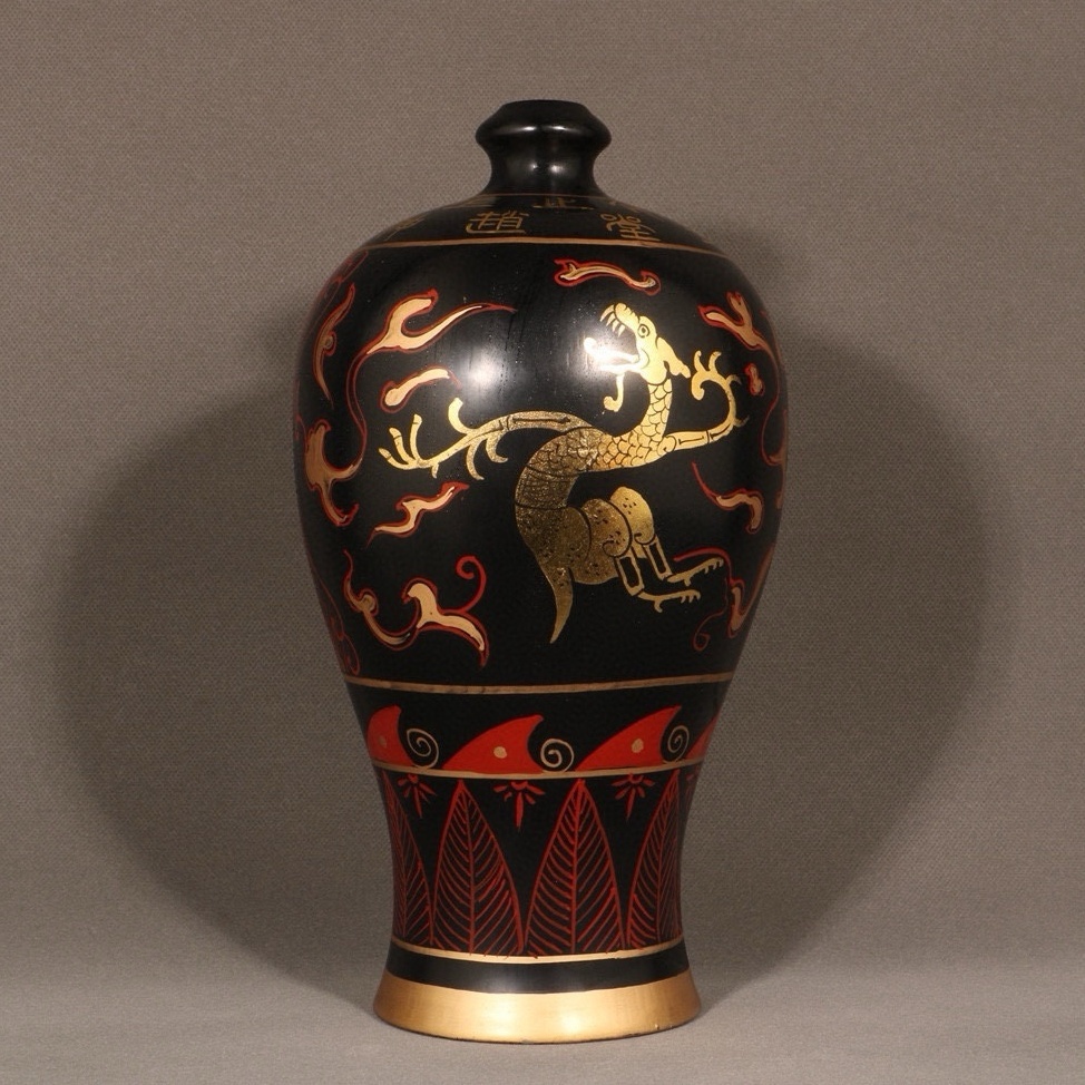 - 珍しい 唐物 中国 宋時代 青龍寺 汝窯 象眼漆器 龍紋梅瓶 古染付 中国美術 骨董 古美術 820