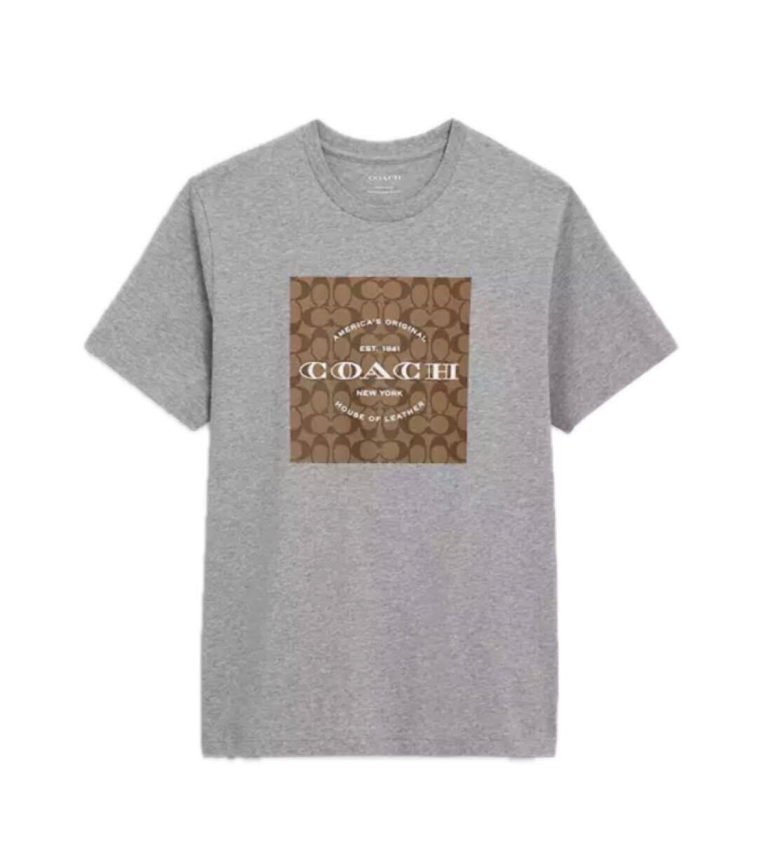 > 送料込●新品●40700円 COACH シグネチャー スクエア 半袖Tシャツ ヘザーグレー メンズXLサイズ コーチ コットン100%