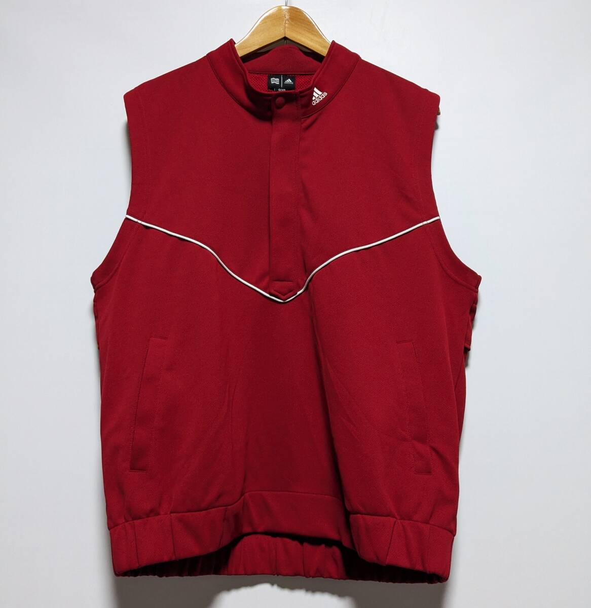 - 新品 アディダスゴルフ ストレッチ ドライジャージベスト ゴルフベスト ハーフジップベスト プルオーバー ブルゾン ジレ 赤 メンズO(XL)