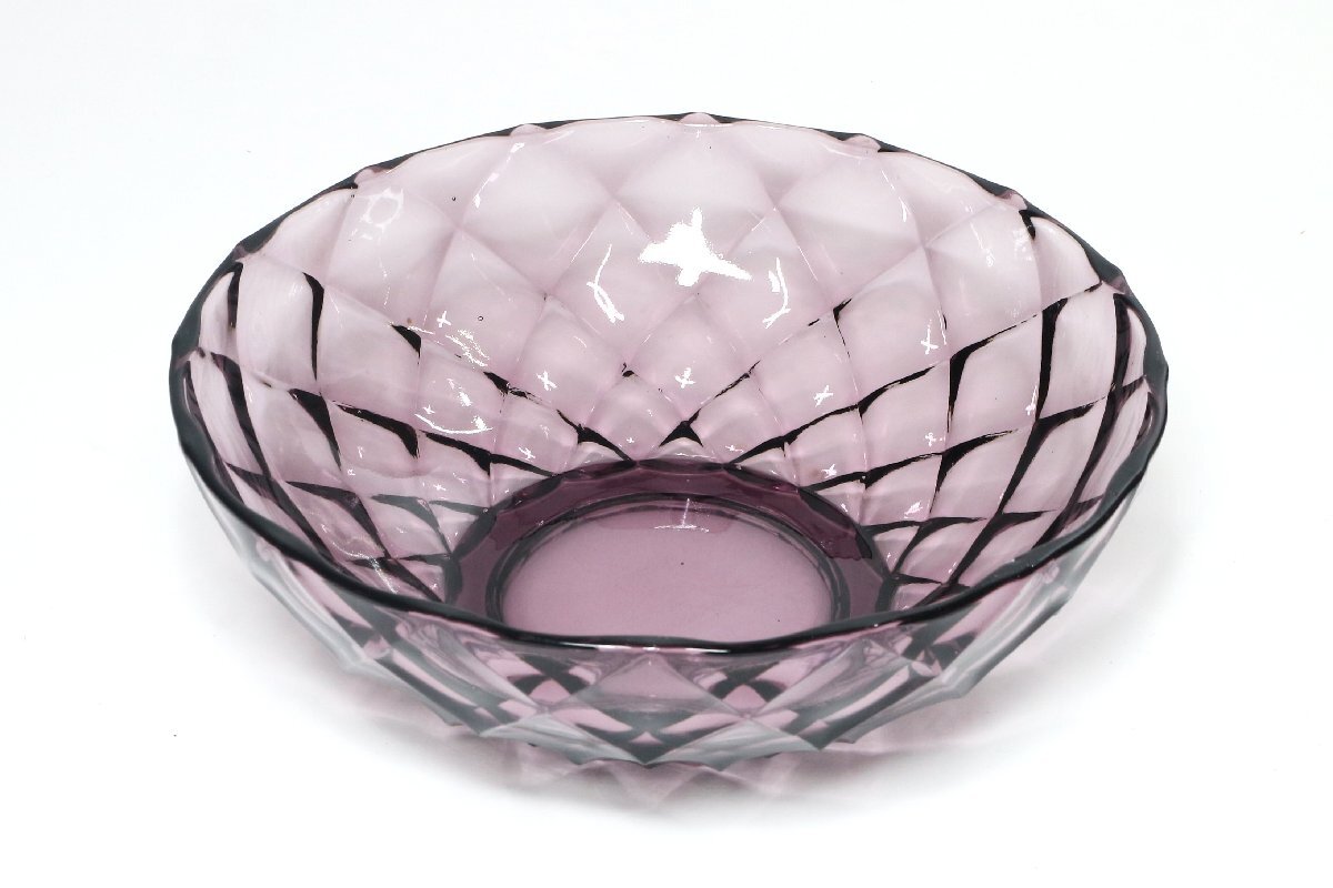 ・昭和レトロ ウランガラス 網目 硝子鉢 /硝子細工 ガラス工芸 紫 菓子器 プレス硝子 |