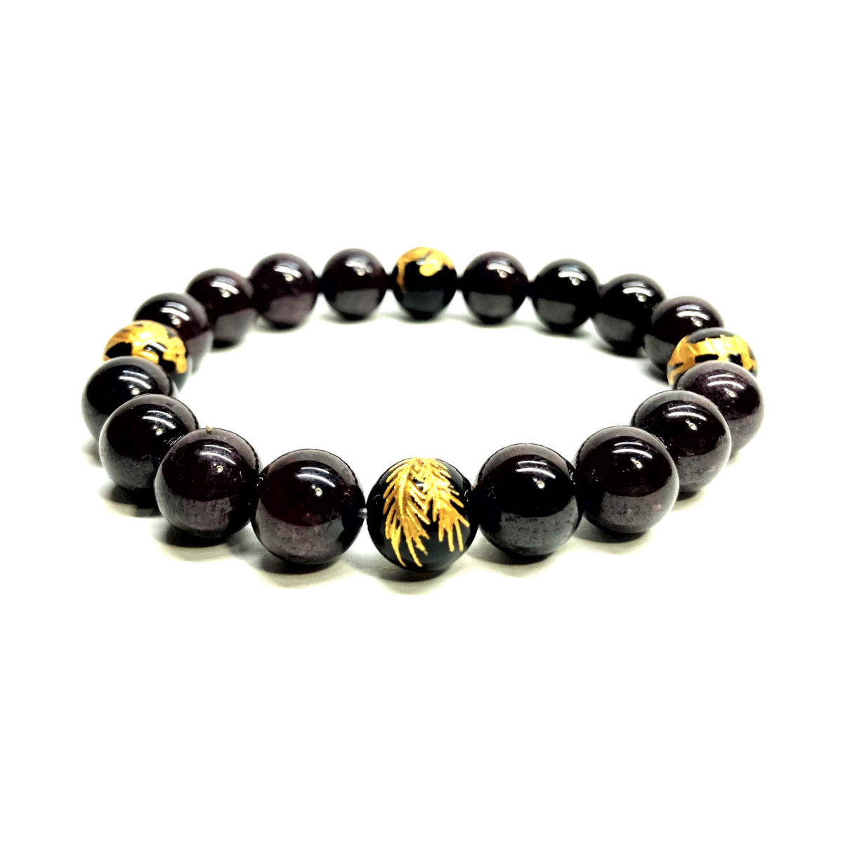 - 10mm 四神獣金彫オニキス×ガーネット パワーストーン ブレスレット天然石 運気上昇 開運 金運 恋愛運 青龍 白虎 玄武 朱雀 ☆