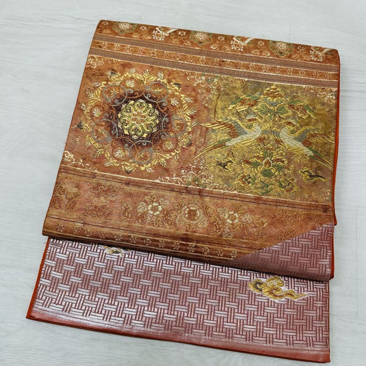 > 袋帯 烈 裂取正倉院華文 美しい織出し 正絹 着物 W-3736