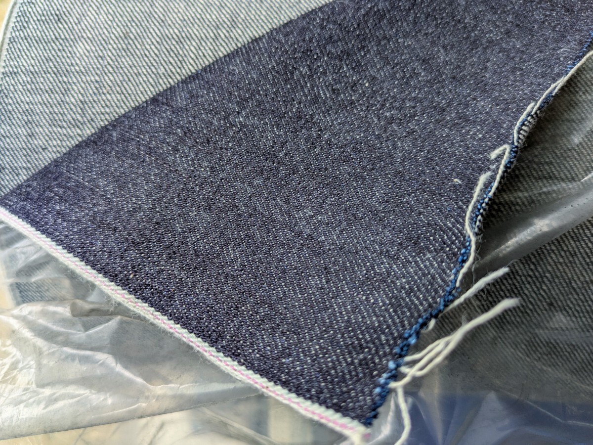 - 訳あり 産地 岡山県 井原デニム キバタ セルヴィッチインディゴデニム 85cm幅 13oz 55m巻 生地 日本製 denim 656Y
