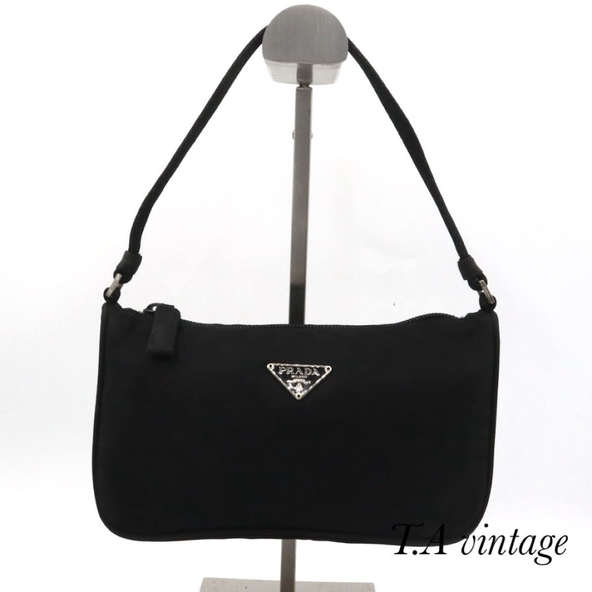 - PRADA 美品 プラダ ナイロン 三角ロゴ ハンドバッグ ブラック