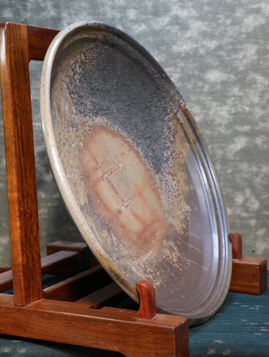 - 備前焼【大皿】行吉 学 作 端正豪快極限焼き締め 窯変 ヒダスキ 焦げ 重量3.9kg