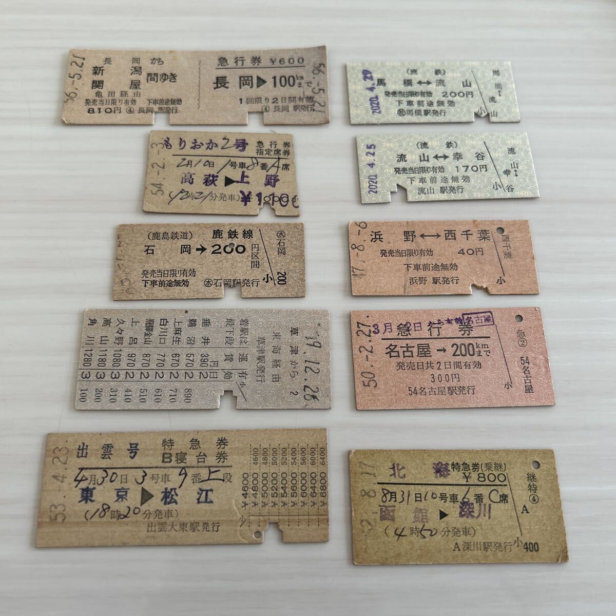 - 古い切符 硬券 特急券 急行券 出雲号/鹿島鉄道/流鉄/もりおか2号/北海 昭和 国鉄 まとめて 10枚セット 34
