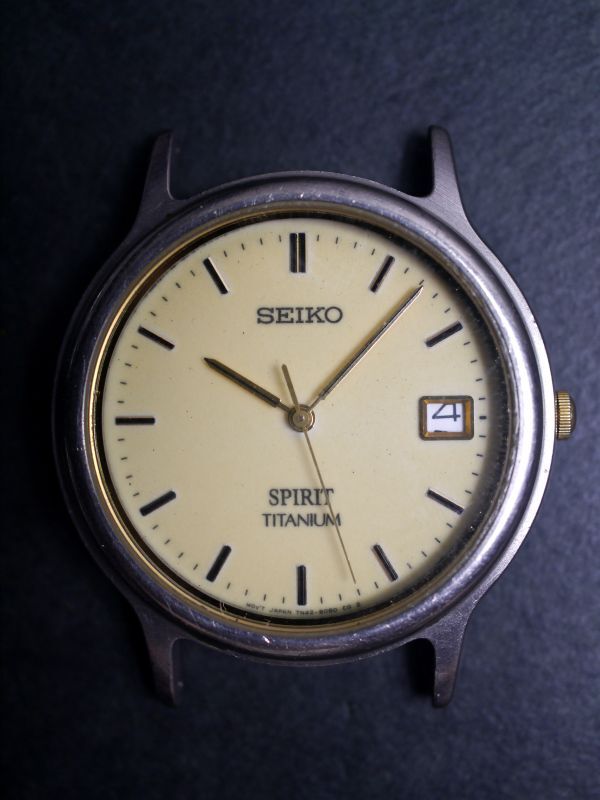 - セイコー SEIKO スピリット SPIRIT クォーツ 3針 デイト チタン 7N42-8060 男性用 メンズ 腕時計 ab562 稼働品