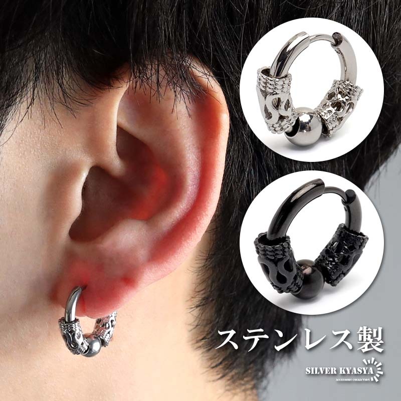 - (シルバー) ブラックピアス フープピアス ドラゴンピアス 龍 ステンレス ピアス メンズ 片耳 金属アレルギー対応