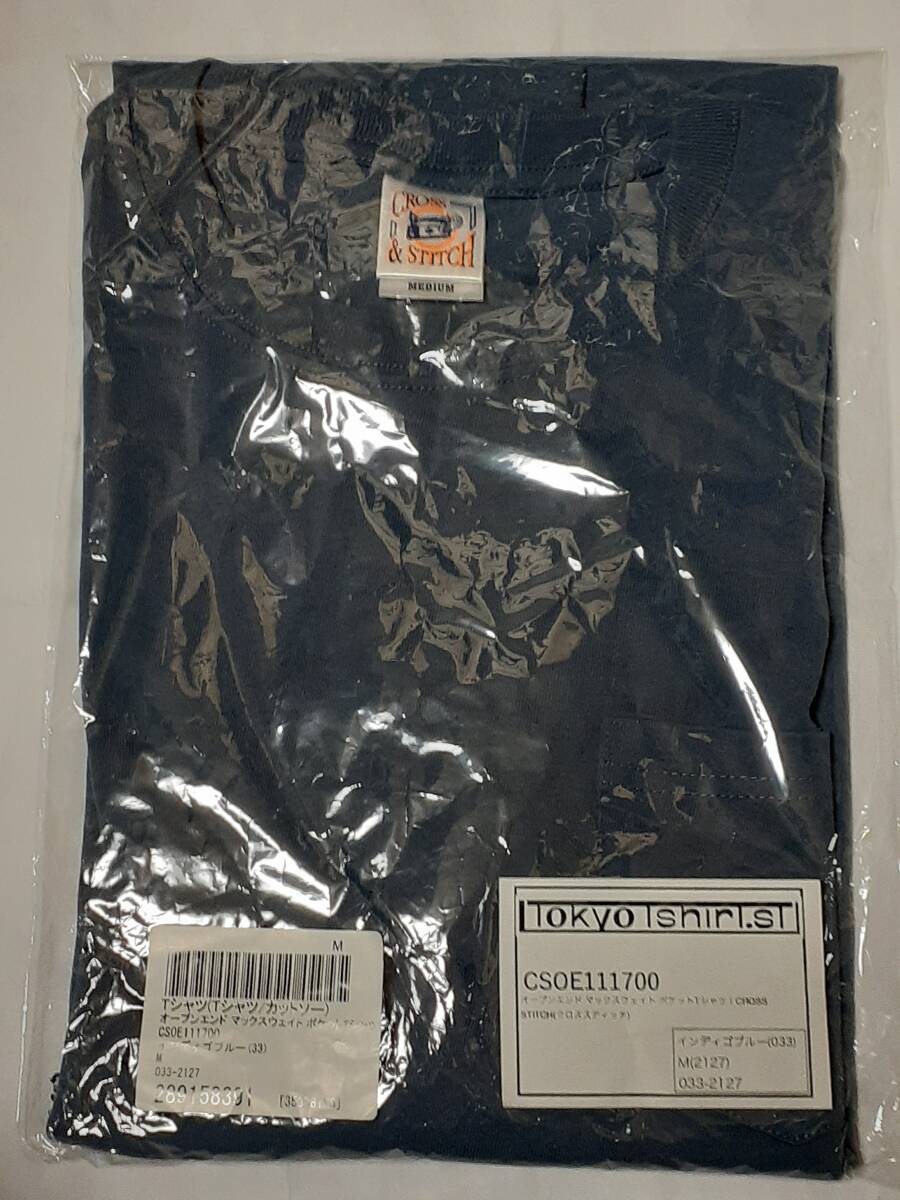 > 新品 Mサイズ CROSS & STITCH オープンエンド マックスウェイト ポケットTシャツ インディゴブルー クロスアンドステッチ BEEFY T1011