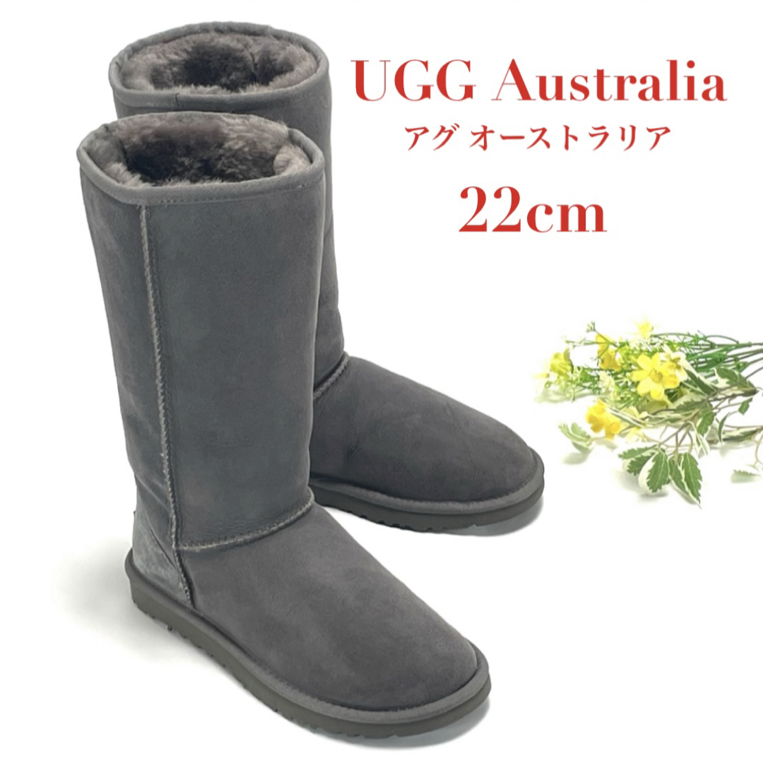 - 美品 UGG Australia アグ オーストラリア クラシック トール 5815 ムートンブーツ シープスキン 22cm グレー レディース 保温 防寒