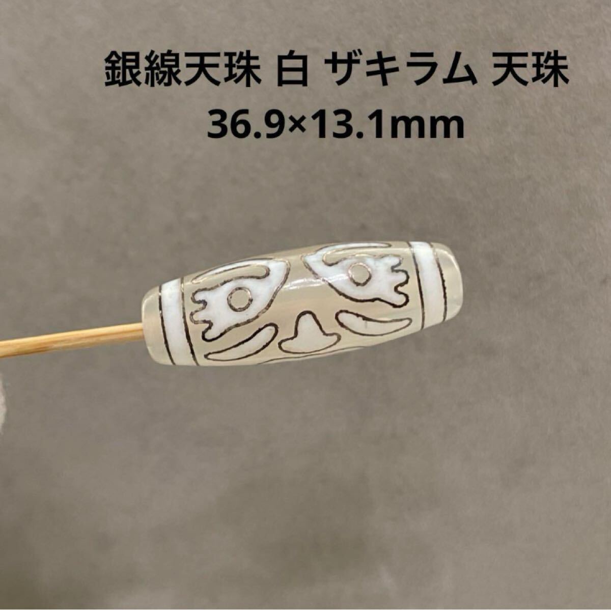 - D882 銀線天珠 白 ザキラム 天珠 36.9×13.1mm