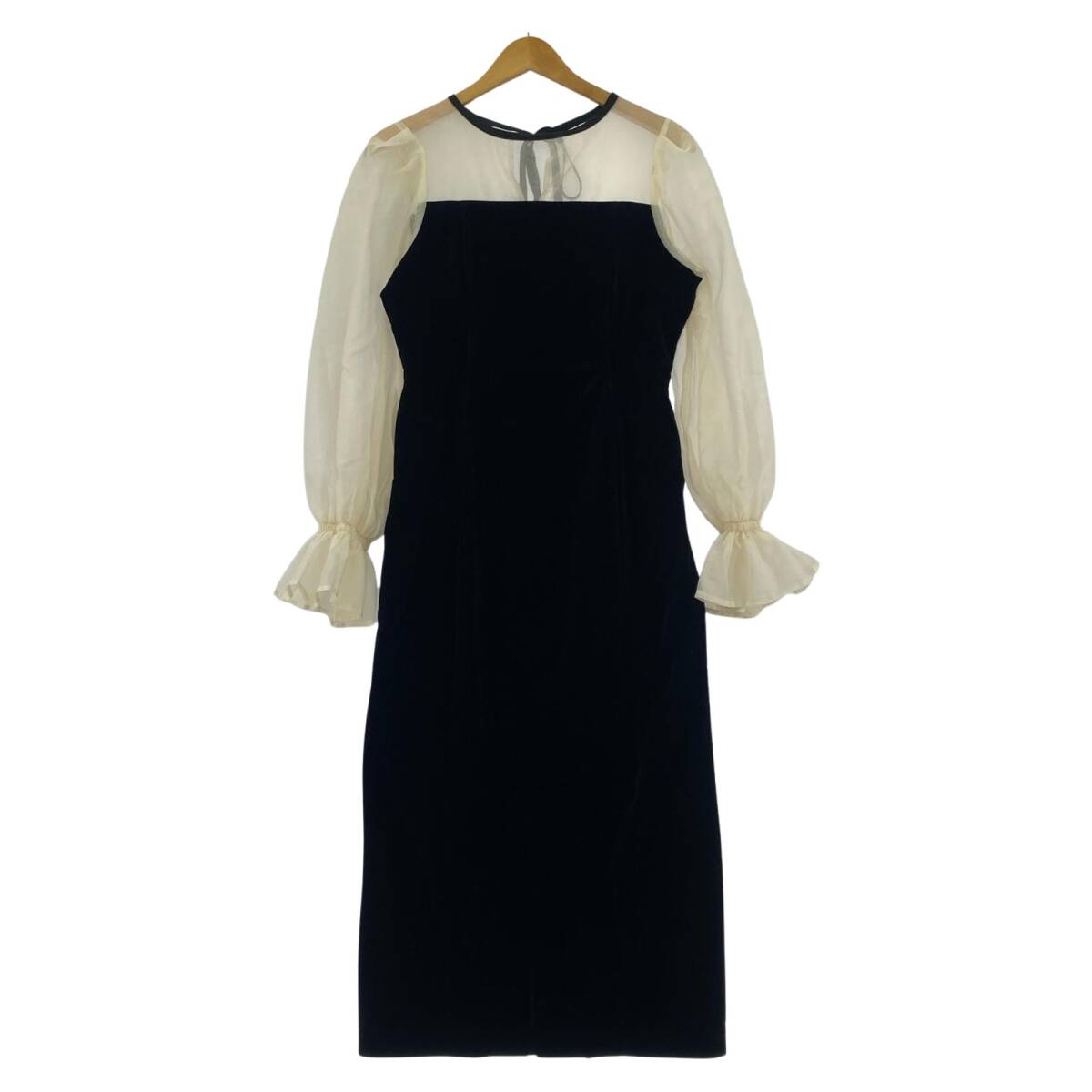 - SALON by Chico サロン バイ チコ シアー切替 ベロア ワンピース size1/ブラック×アイボリー