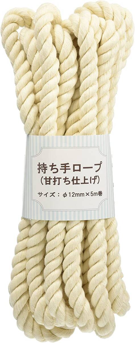 - 綿 手芸 多用途ロープ 12mm×5m巻 アウトドア 甘打ち仕上げ 生成 持ち手ロープ ペット用 Chuko) S3-1 日本紐釦