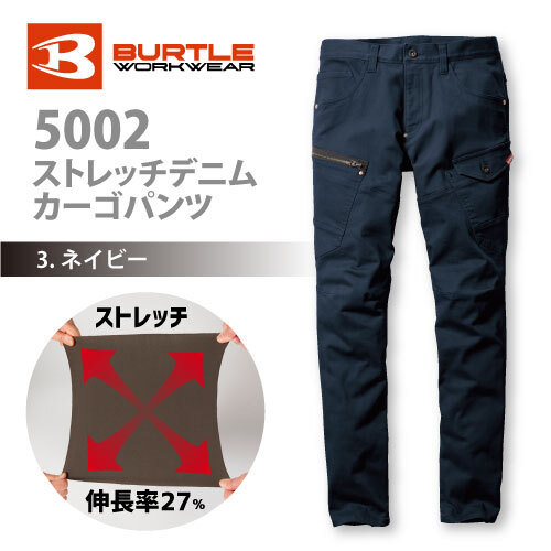 - バートル 5001シリーズ 【5002】ストレッチデニムカーゴパンツ ■Mサイズ■ ネイビー色