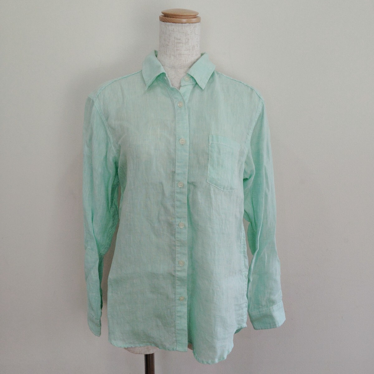 - 0822/3/BAYFLOW レディース 長袖シャツ ブラウス 麻 無地 ライトブルー