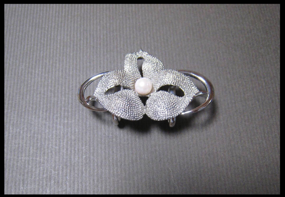 - 花彫金 パール飾り 打ち出し細工 帯留 少し大振り 5.3cm 着物 帯飾り 和装アクセサリー