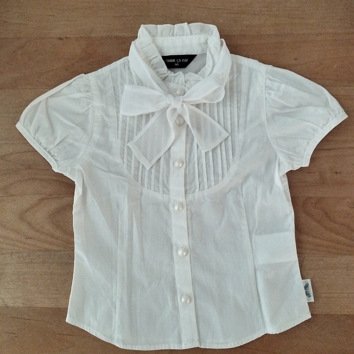 - 【90cm】コムサイズム キッズ 女の子 フォーマル リボン付き 白 半袖ブラウス 送料無料