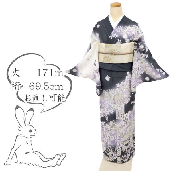 - 【訪問着】 新品 長尺 夏着物 『絽』 短冊に辻が花 墨色×白 正絹着物 HP5-6