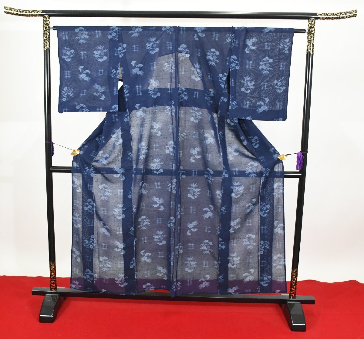 > 紬 つむぎ 蝶々 松 絣 正絹 夏着物 薄物 身丈152cm 裄丈65cm ★着物 pb-3766 桜庭呉服店