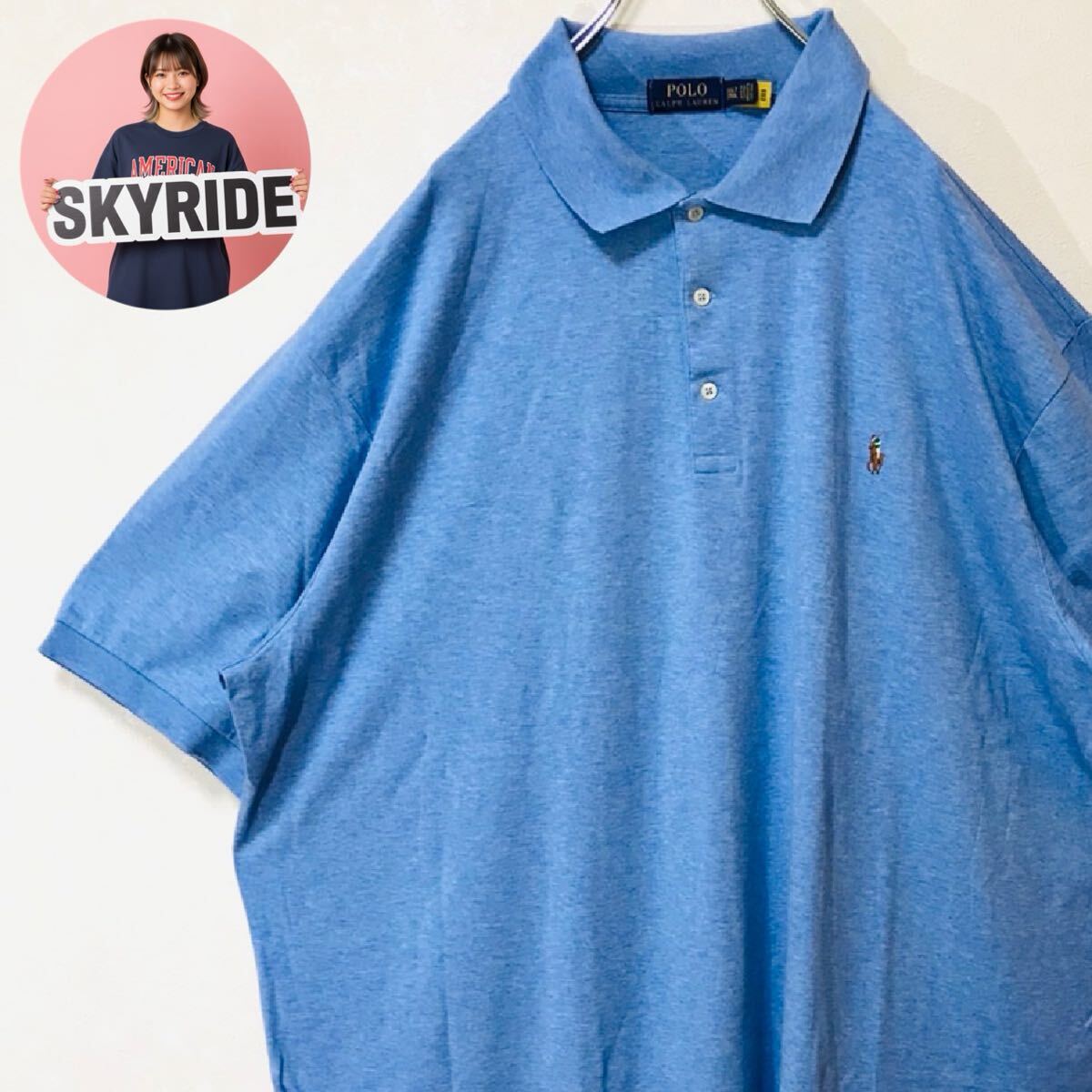 > 【人気】Polo Ralph Lauren ポロラルフローレン 20s メンズ ポロシャツ 水色 3XLT ポニー刺繍ロゴ ビッグシルエット 古着 #TT0270