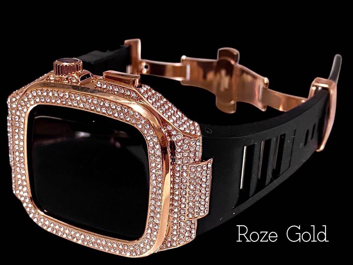 - Apple Watch キラキラ カバー ケース アップルウォッチ用バンド ラバーベルト black rose gold