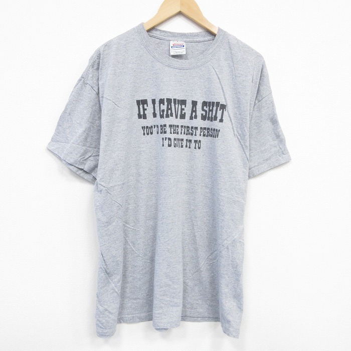 - XL/古着 ヘインズ 半袖 ビンテージ Tシャツ メンズ 00s メッセージ クルーネック グレー 霜降り 25aug08 中古