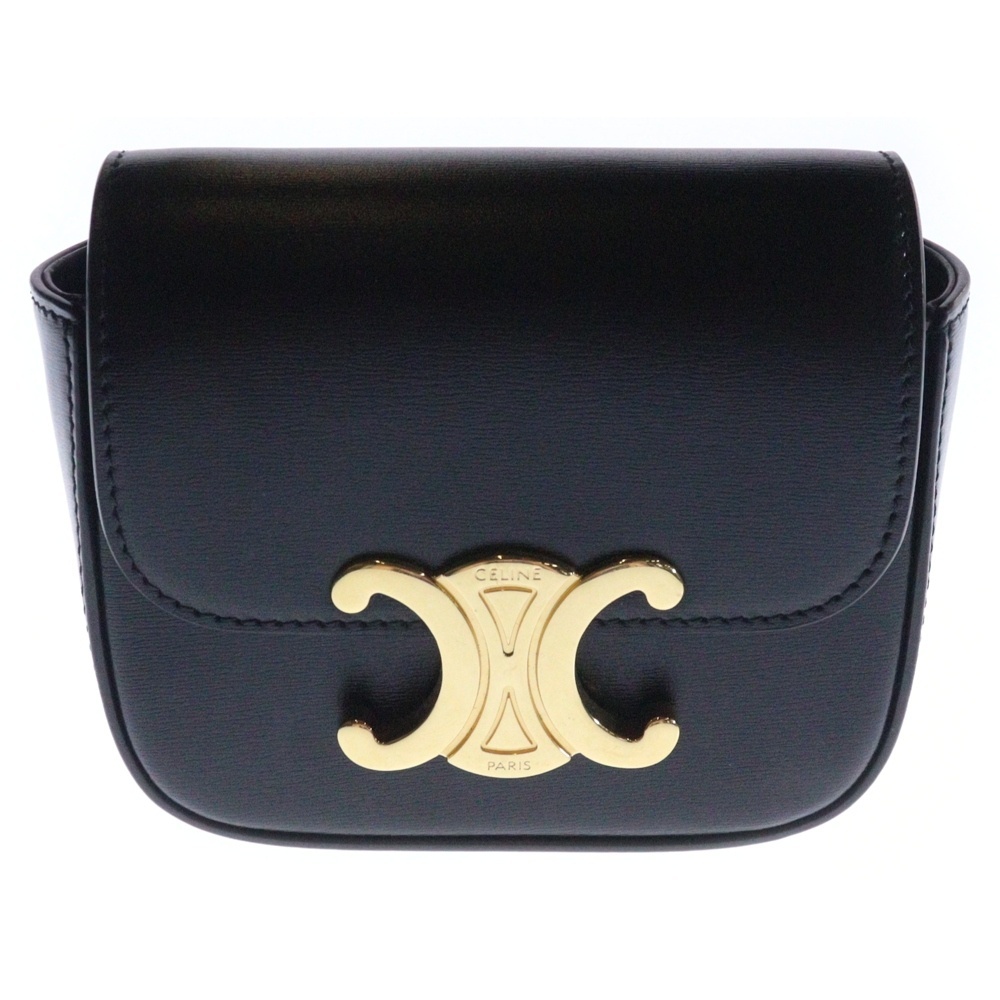 > CELINE セリーヌ トリオンフ ミニ クロード ショルダーバッグ ポシェット ゴールド金具 ブラック レザー