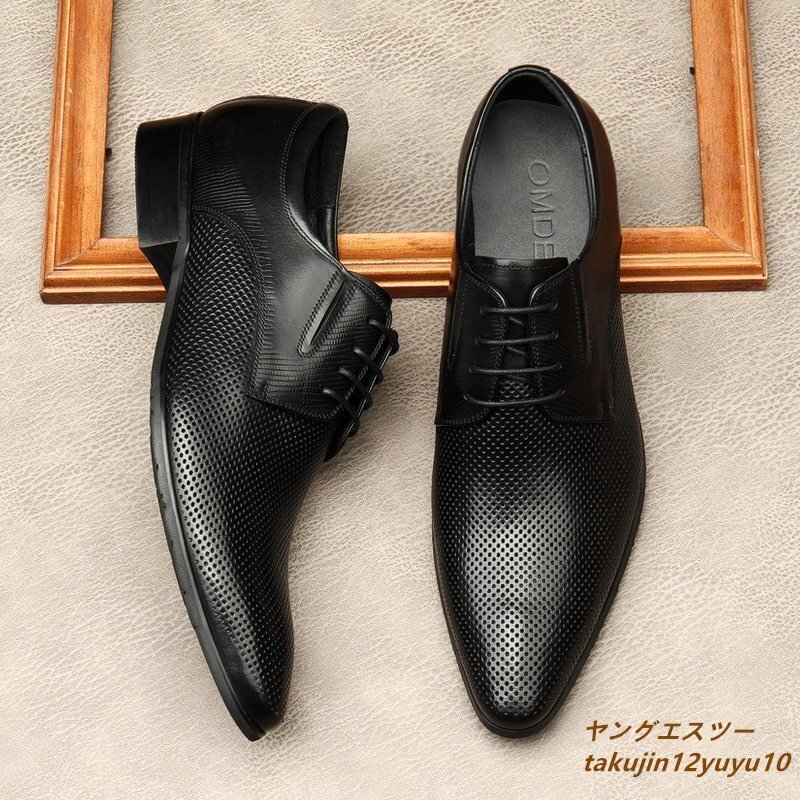 - 定価9万◆最高級 ビジネスシューズ 超希少 本革 レザーシューズ 職人手作り 透かし彫り メンズ 紳士靴 フォーマル 牛革 革靴 黒色 25.5cm