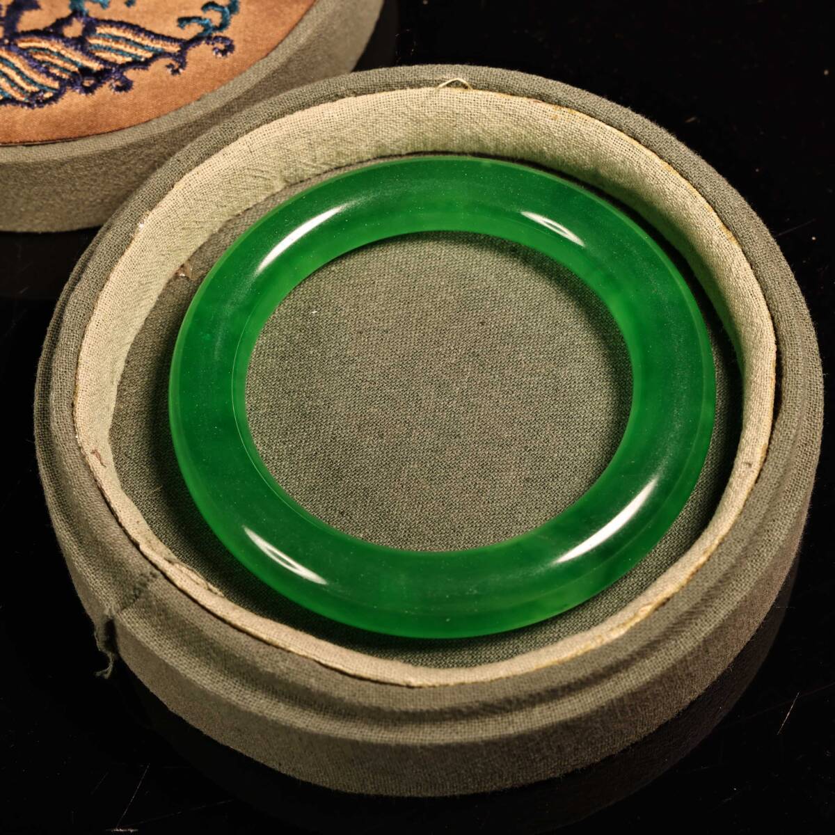 - 清代・老玉 秘藏 刺繍ボ ックス入り玉ブレスレット ひすい色 共箱付き 唐物 古玉彫 天然石 稀少珍品 古美術 古賞物 古置物 旧蔵 823