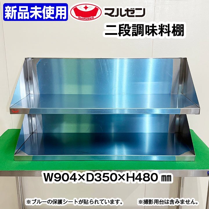 > ★新品未使用★ マルゼン 2段調味料棚 ステンレス 幅904×奥行350×高さ480mm 中古 厨房機器 ラック 板金 収納