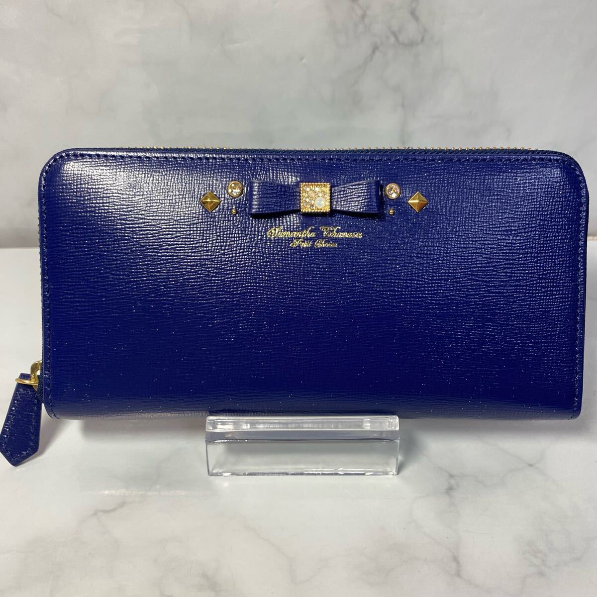 - 未使用 Samantha Thavasa Petit Choice サマンサタバサ プチチョイス ラウンドファスナー長財布 ネイビー リボン ビジュー レザー