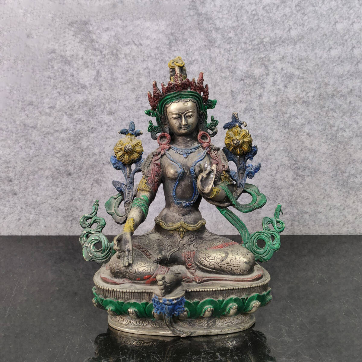 > 8+GV7361「東洋美術」人間国宝 中国骨董 銅製品【彩色されたブロンズ製の観音仏像】 旧物 仏像孤品 珍品 精美 收藏品 中国の古い美術