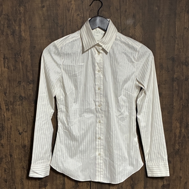 > C14◇UNTITLED | アンタイトル 長袖シャツ ストライプ柄 ホワイト×ピンク×シルバー レディース 0サイズ 中古品