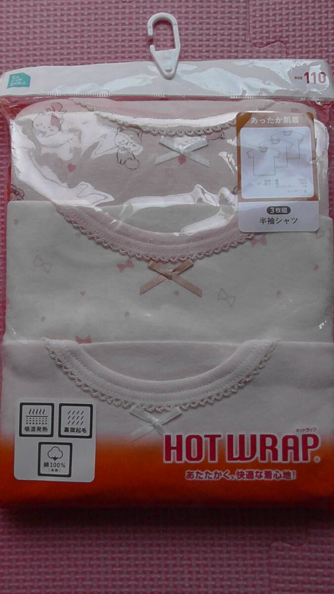 - 新品 110 3枚組 半袖シャツ 綿100% ネコ柄 リボン 2枚組よりお得 3枚セット 女の子 あったか肌着 下着 秋物 冬物 西松屋 100~ 送料無料