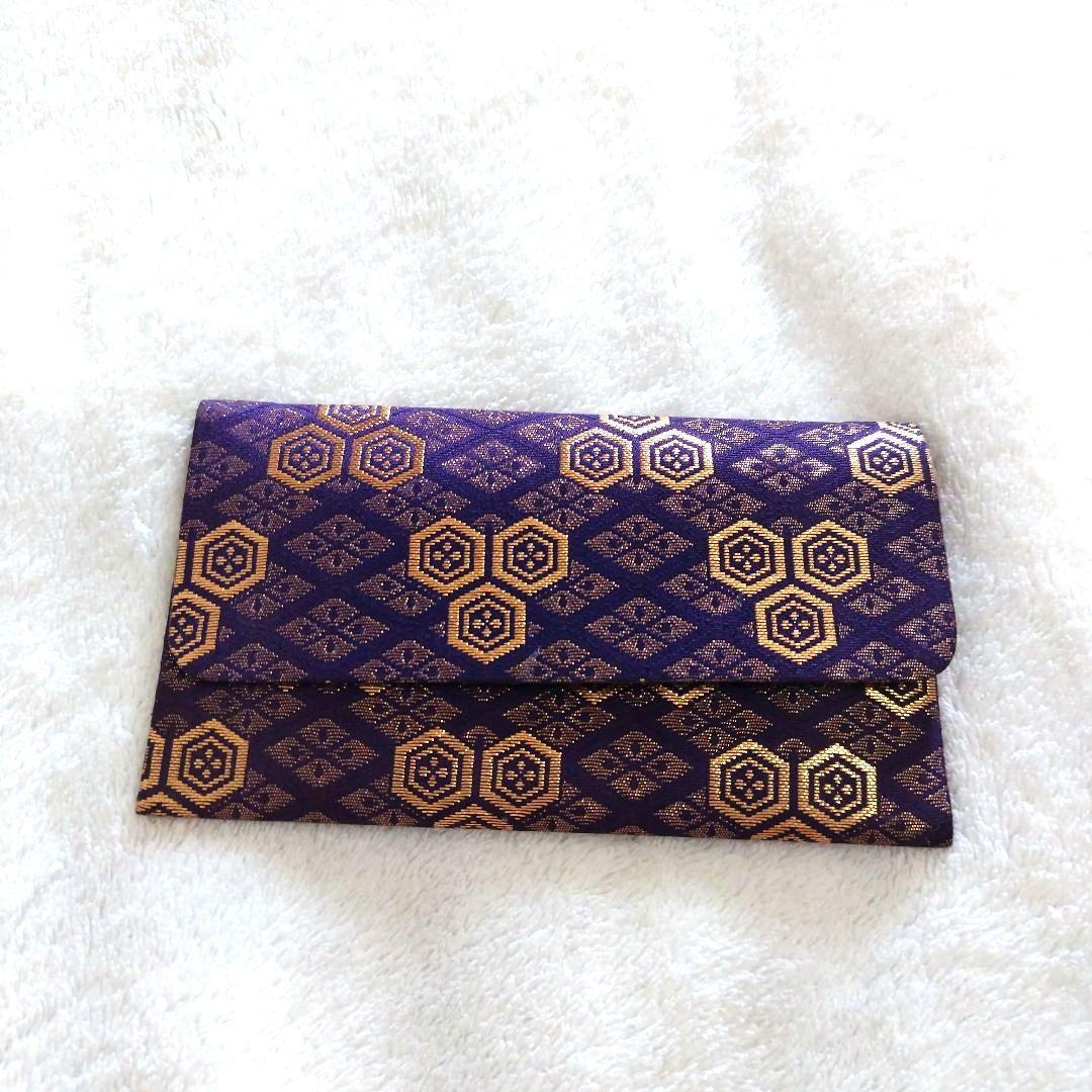 - 和柄カードケース 和装小物 菱 パープル ゴールド 紫 金