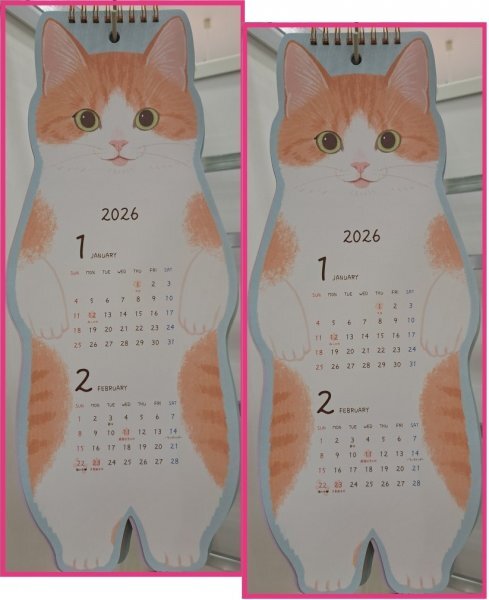 - 【送料無料 2冊:可愛い「猫」カレンダー:42x20cm】★2026年:猫,ねこ,ネコ,キャット:壁掛け,6面★暦