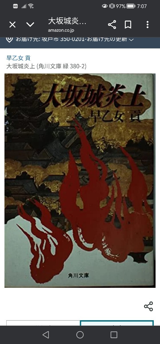- 大坂城炎上 早乙女貢著 角川文庫 昭和レトロ 時代小説 歴史小説 文庫本