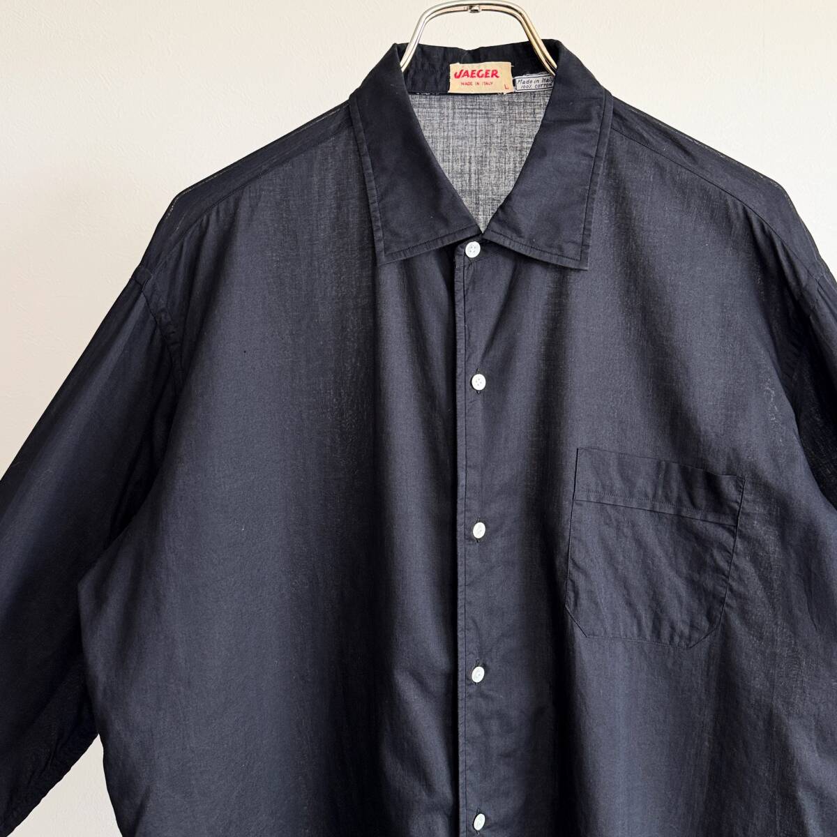 > 希少《 Mint Condition / JAEGER 》50s 60s 極上品【 イタリア製 イエーガー 黒 ブラック コットン ボックス シャツ L ビンテージ】