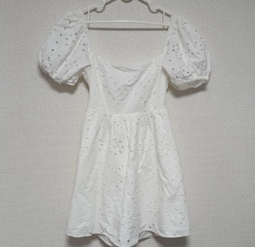 > ZARA☆袖パフスリーブカギ編みデザインバックあきチュニック・ミニワンピース ワンピース 半袖 レース