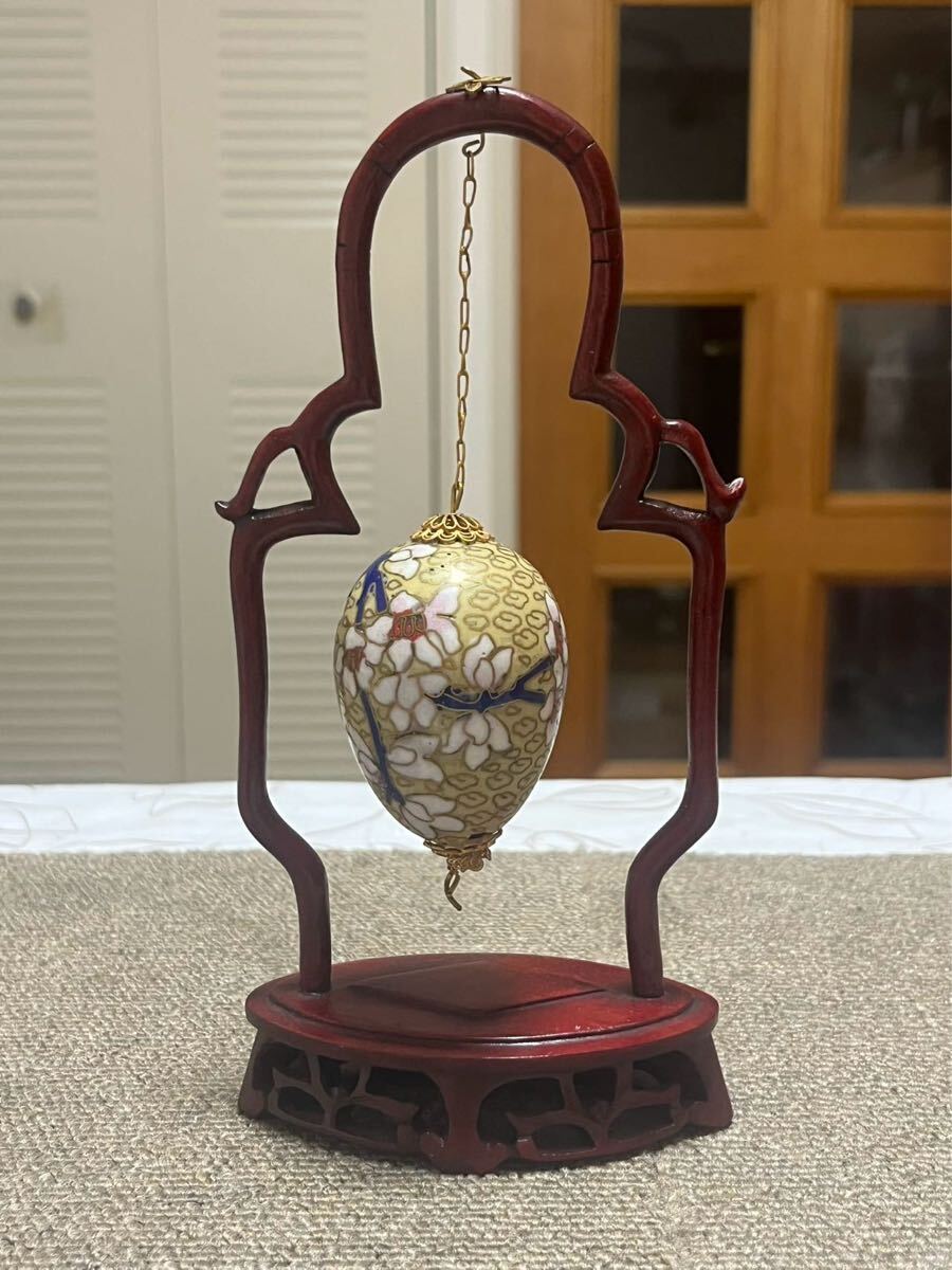 - 中国美術 吊り卵 古七宝 唐木台 装飾