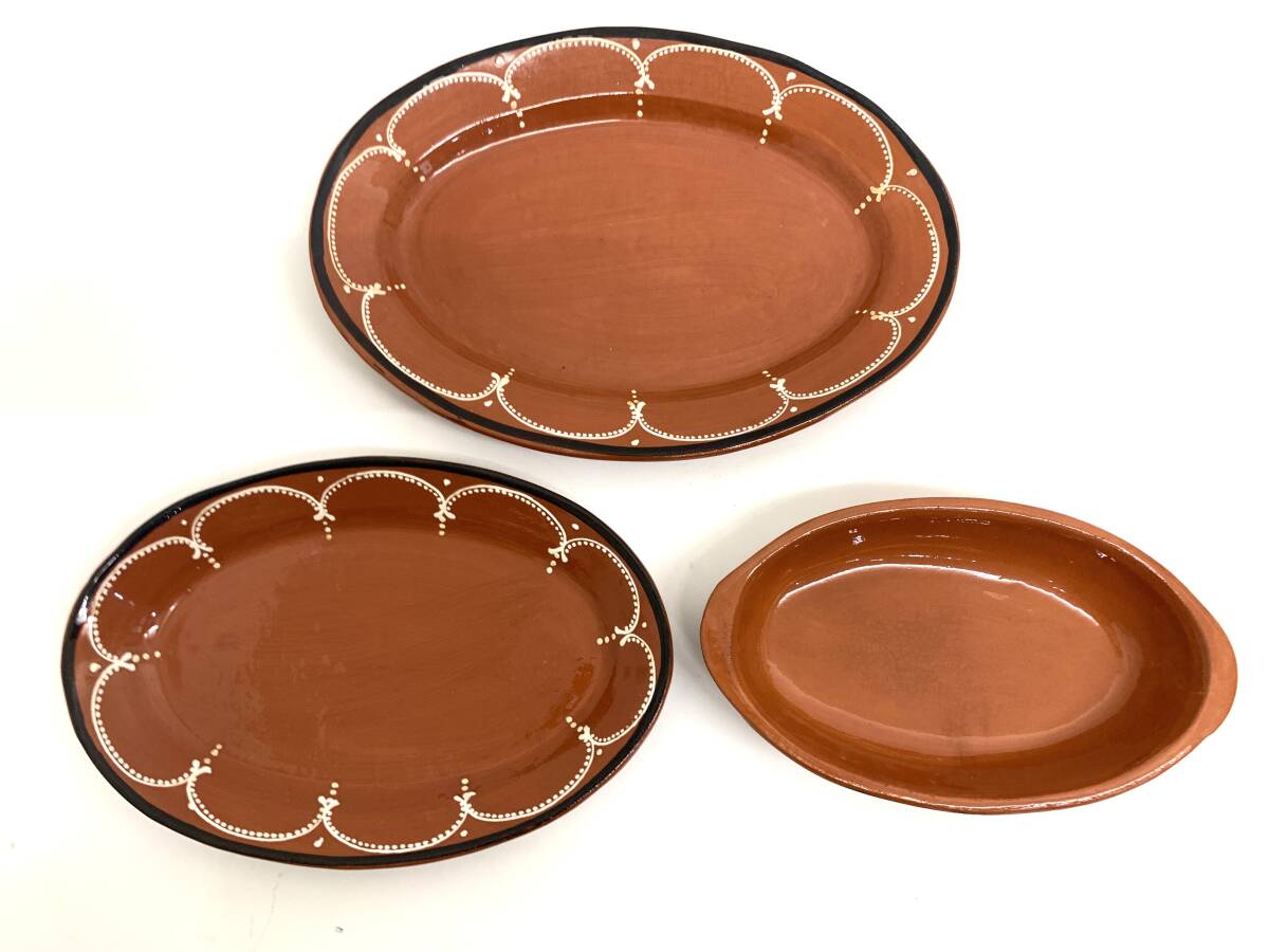 > 谷C133 Portugal お皿セット 民芸品 ポルトガル グラタン皿 パスタ皿 オレンジ系ブラウン