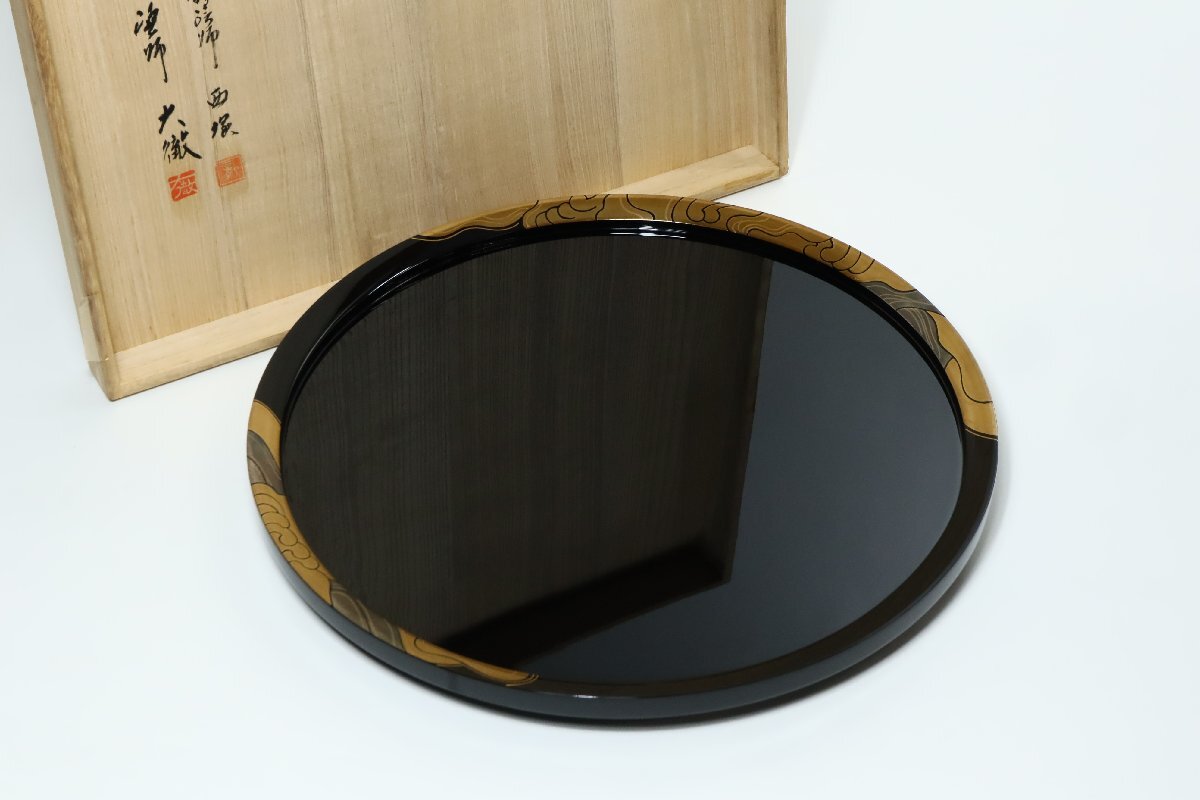 ・ 輪島塗 波蒔絵 あすなろ 曲輪造り大皿 塗師:大徹八井 蒔絵師:西塚龍 共箱 /漆美術 蒔絵美術 漆器
