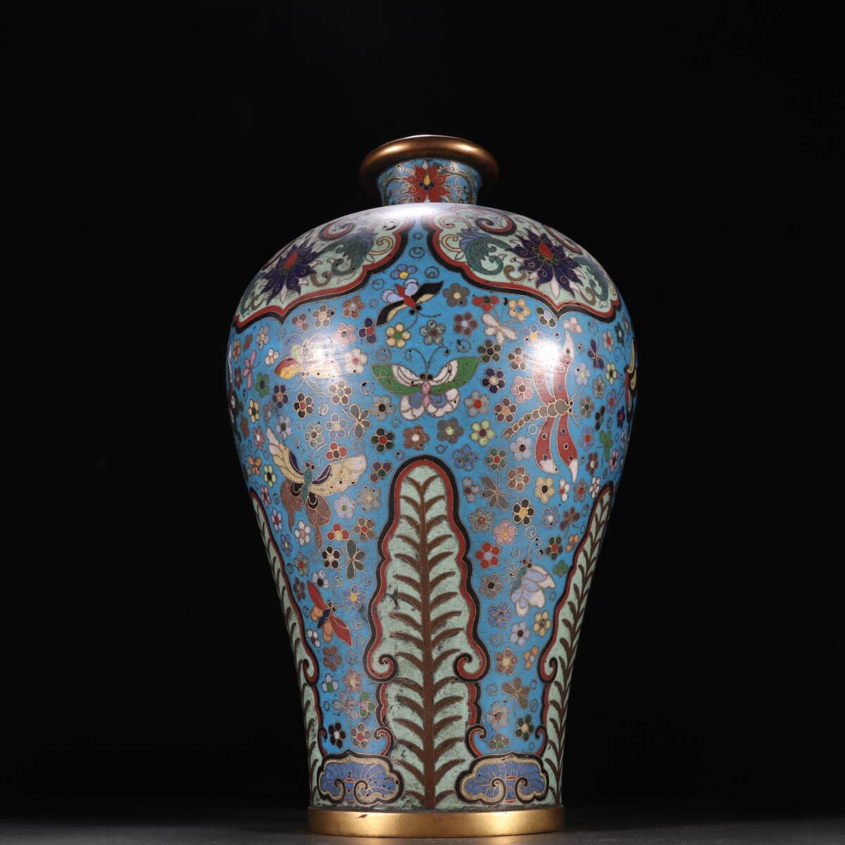 - 8+GV7381「東洋美術」 中国骨董 人間国宝 磁器製品【銅製七宝焼き梅花瓶】 旧物 孤品 珍品 陶磁器 収蔵価値が高い