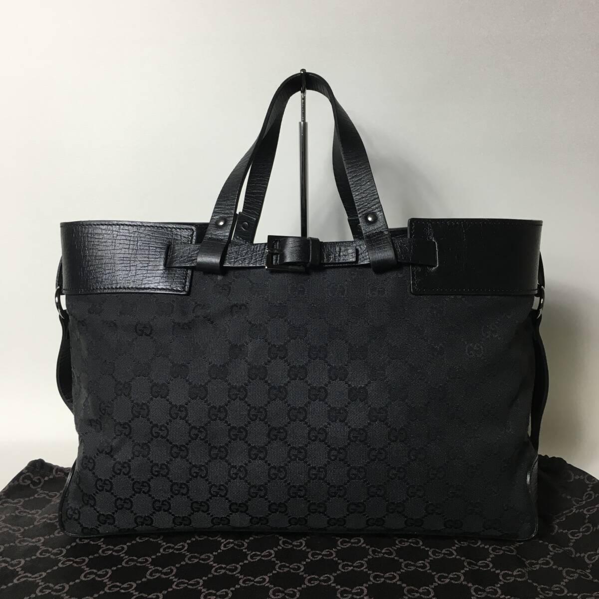 - 78B13|美品|グッチ GGキャンバス ハンドバッグ ブラック