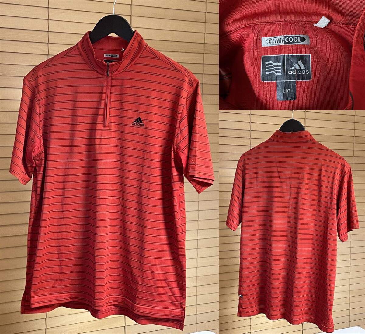 - 【激安1点のみ 国内正規品】adidas GOLF アディダス ゴルフ CLIMA COOL クライマクール ボーダー ハイネック 半袖 シャツ ポロシャツ L