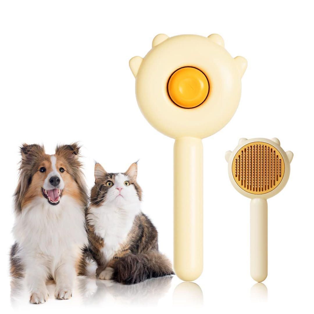 - ペットブラシ 猫 ブラシ 犬 ブラシ 猫用ブラシ スリッカーブラシ 犬 ペット用ブラシ ワンプッシュ式 マッサージ 丸洗い可能 (Yellow)