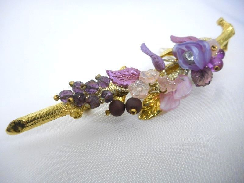 - ブローチ ローズ 薔薇 パープル×ゴールド 12cm M-060