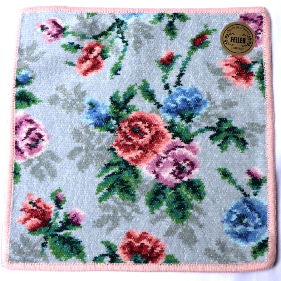 - ★新品★ フェイラーハンカチ 定価2,750円 メロウローズ 25cm×25cm グレー