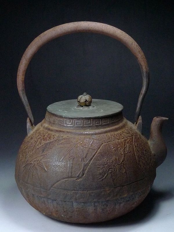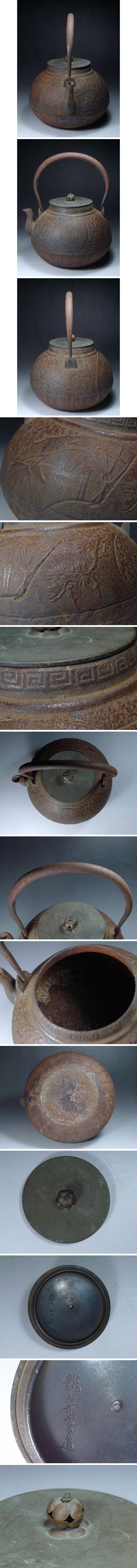 - 8014N05*07B▲茶道具 龍文堂造 松竹梅文 梅花摘み蓋 鉄瓶 鉄器 急須 茶器 煎茶道具 雷紋
